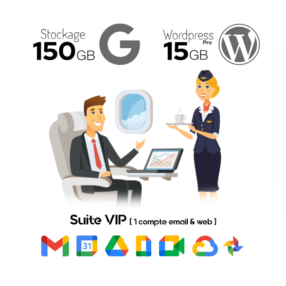 • Un compte Google Workspace incluant  un email personalisé @dubreuil.fr sur la plateforme Gmail. Stockages (15Gb, 30Gb, 150Gb ou 500Gb)